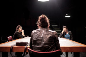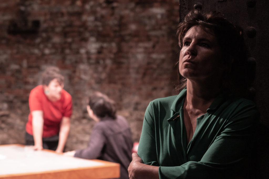 Texte : Guillermo Calderon / Traduction : Vanessa Verstappen, Sarah Siré et Maria José Parga / Mise en scène : Sarah Siré / Avec : Sophie Jaskulski, Mathilde Lefèvre, Sarah Siré / Regards extérieurs : Maria José Parga et Nelly Framinet / Scénographie et costumes : Aline Breucker / Création lumières : Nelly Framinet / Assistanat à la mise en scène : Sélène Assaf / Réalisation vidéo : Laeticia Defendini et Jonathan Turkel / Production : Fabien Defendini / Diffusion : La Charge du Rhinocéros / Une création de Pola asbl, en coproduction avec le Théâtre de la Vie. Réalisé avec l’aide de la Fédération Wallonie Bruxelles, Administration générale de la Culture, Direction du Théâtre