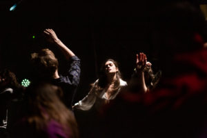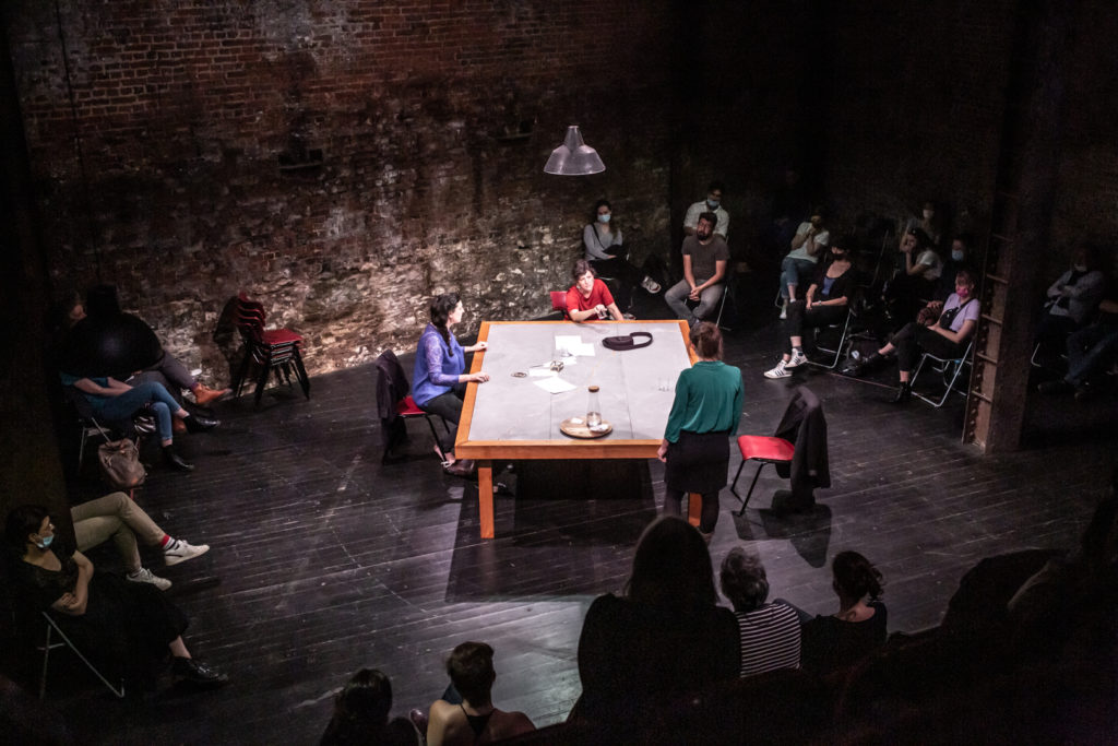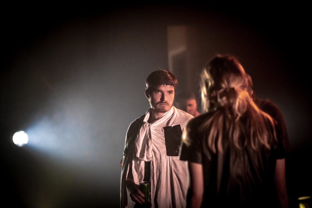 A l’origine de ce spectacle, il y a un groupe qui s’est constitué autour de la pièce du dramaturge contemporain Ivan Viripaev. Cette pièce aborde l’ivresse comme un état décalé de la vie quotidienne qui permet à chacun d’ouvrir des instants de révélation pour soi même aussi bien que pour les autres. Ces instants de possibles donnent aux personnages la capacité de livrer leurs sentiments sans limite au point d’imaginer une vie où les frontières se délient, où cesse le mensonge, s’inventent de nouveaux dieux, se témoigne de l’amour impossible. Cette équipe de jeunes comédien.ne.s a dégagé une force incompressible à vouloir porter ce texte comme si c’était une partie du monde à venir qui s’y jouait. Le contexte sanitaire nous a en ce sens encouragé à poursuivre cette création qui nous reconnectait à la vie et donc à l’essentiel.